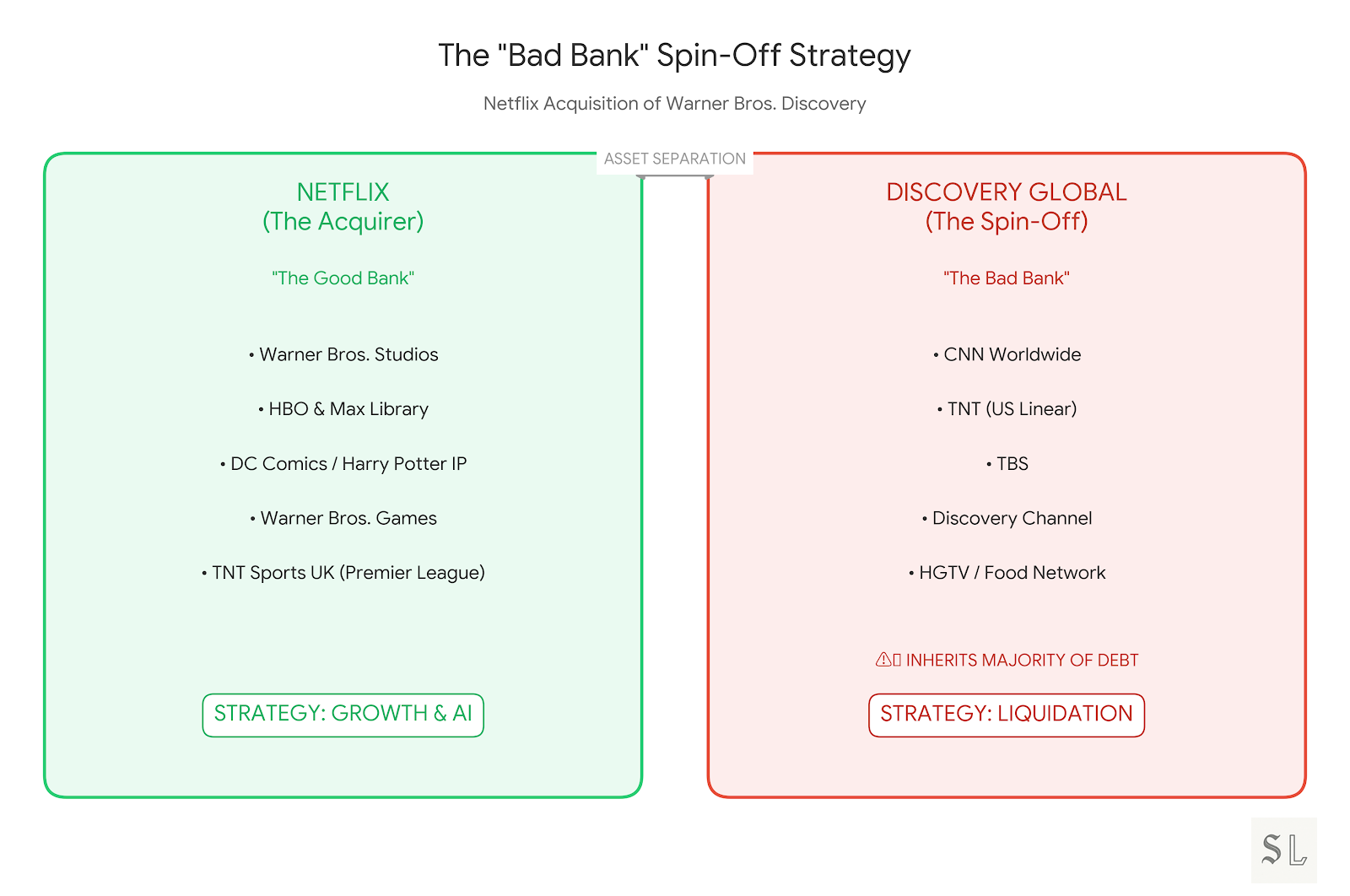 In the unsentimental language of high finance, this is a “Bad Bank” strategy. When a financial institution is burdened by toxic assets, it isolates them in a separate entity to protect the healthy balance sheet. Netflix has made a clinical assessment: linear cable is a toxic asset. It has extracted the “future” (the studio lots, the intellectual property, the HBO library) and quarantined the “past” in a vessel designed to sink slowly.
