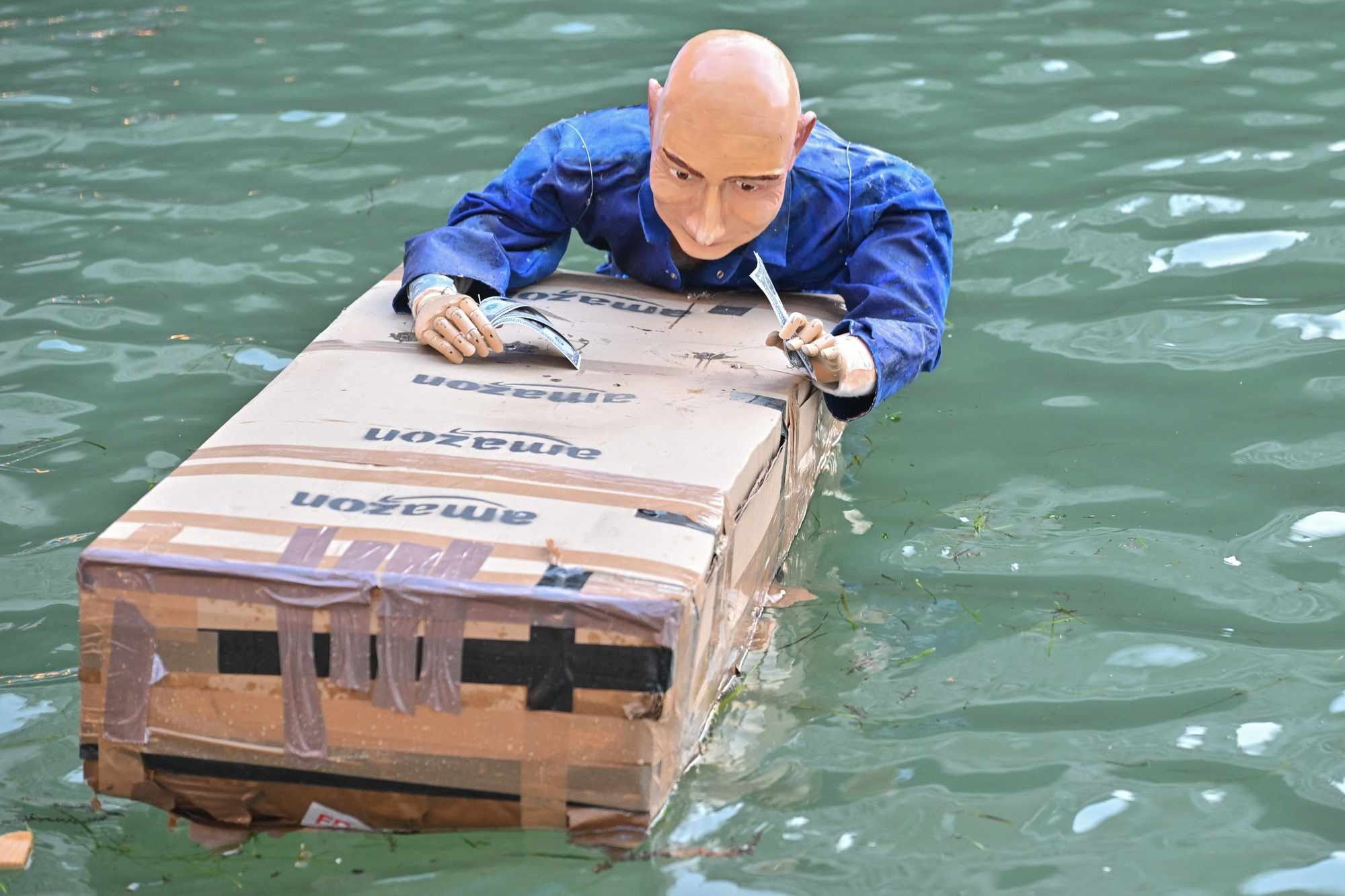 George Clooney arrived in Venice by boat, Jeff Bezos arrived by helicopter.
