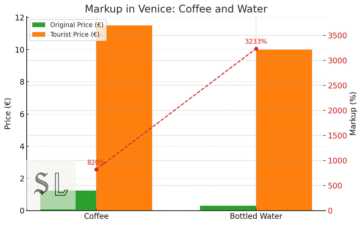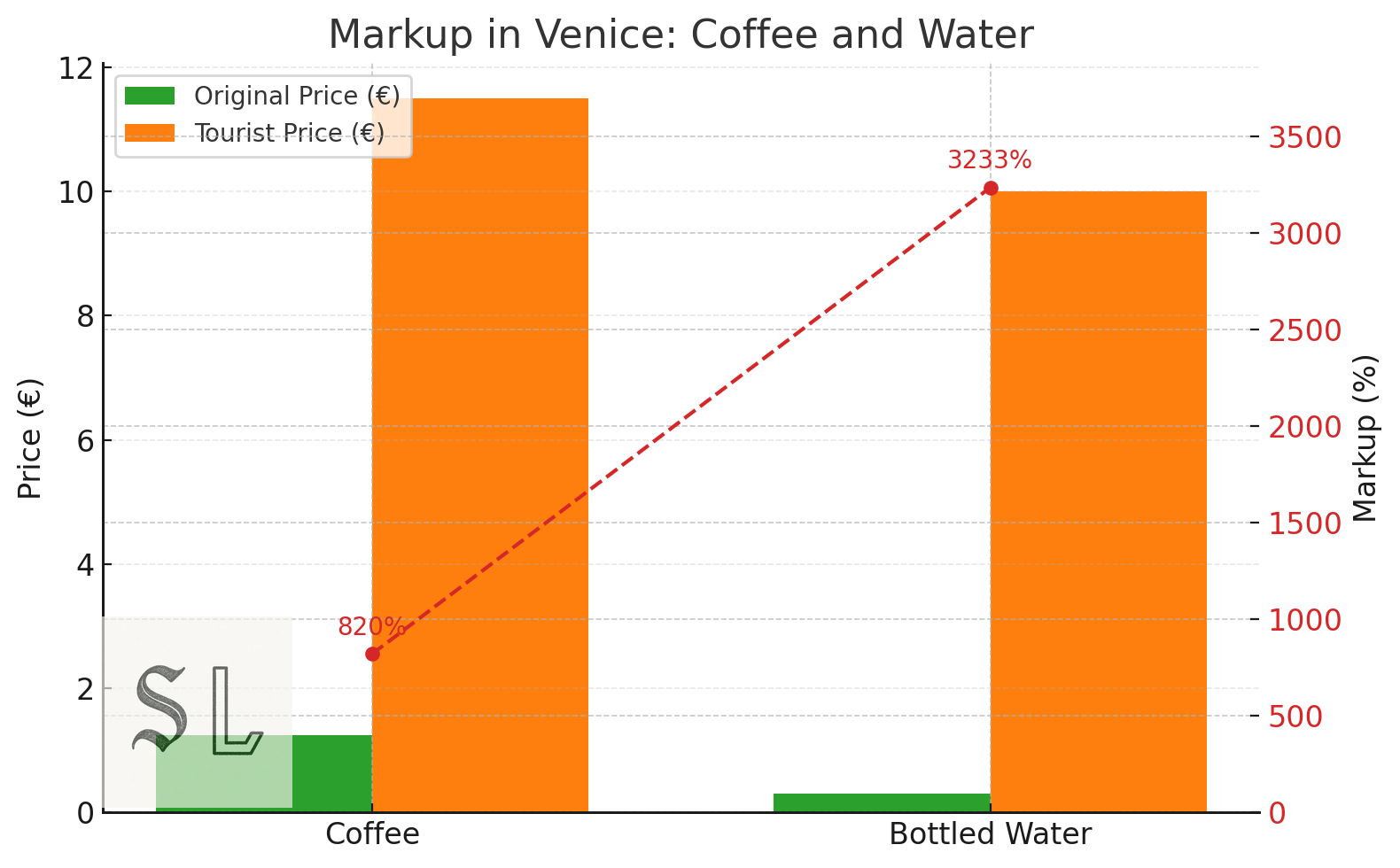Let’s be precise: in August 2018, at Caffè Lavena in St. Mark’s Square, a tourist ordered two bottles of water and two espressos. The bill: €43.