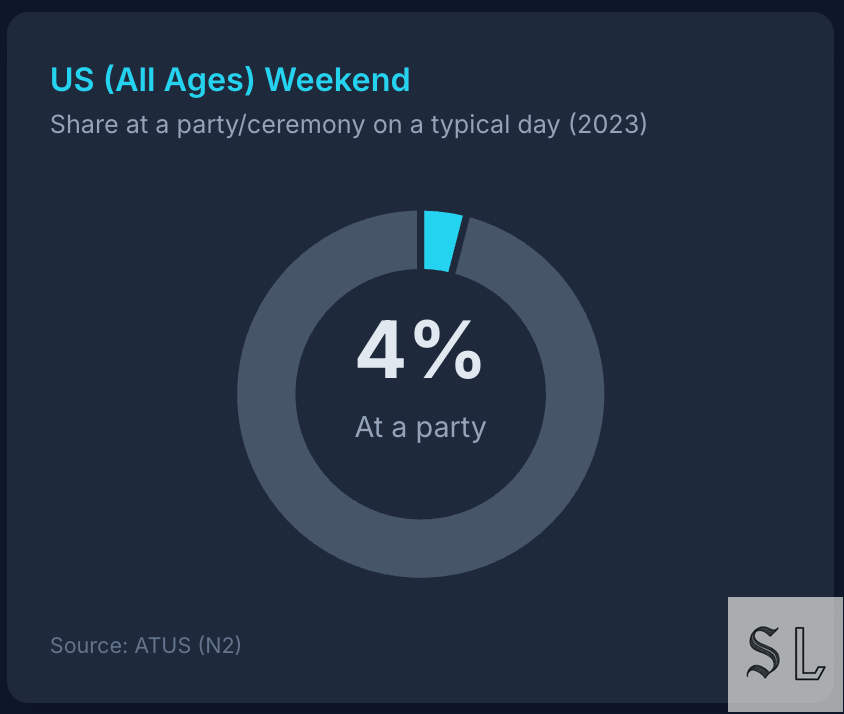24 in 25 Americans aren’t at a party on a typical weekend day. Peaks, not plumbing.