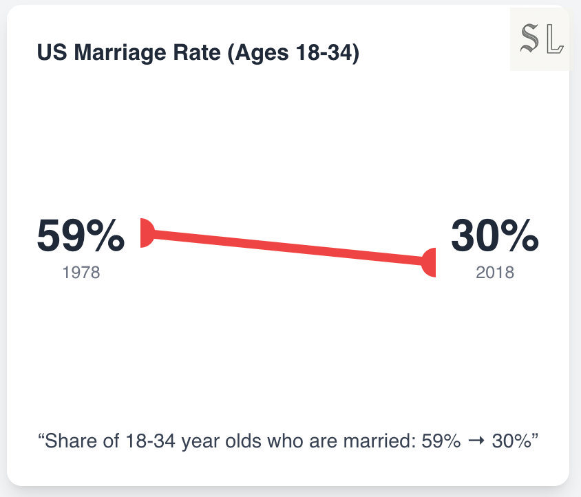 Marriage didn’t “slip”; it halved. The default 20-something script (ring + lease) became a minority outcome.