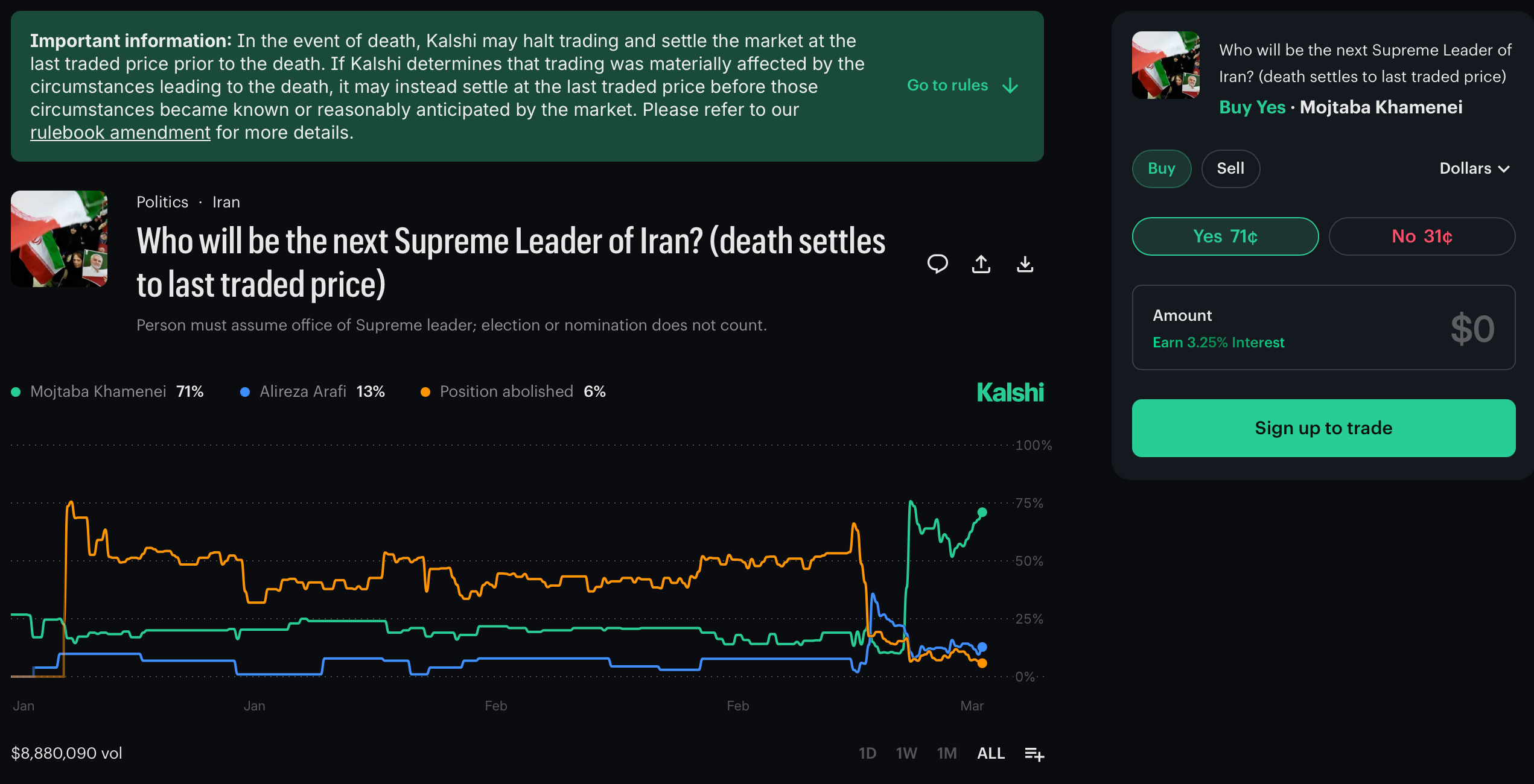 A prediction market is simple enough: people buy and sell positions on whether something will happen. If “yes” is trading at 70 cents, the market is effectively saying there is a 70 per cent chance the event occurs. Polls ask what people say they believe. Prediction markets ask what they are willing to risk being wrong about. That is why they are always positioned as a cleaner instrument for truth (people literally putting money with their mouth is). Less punditry, more price.