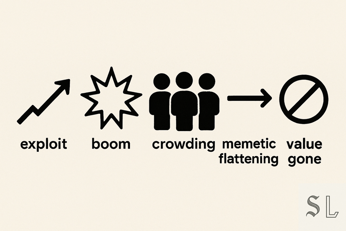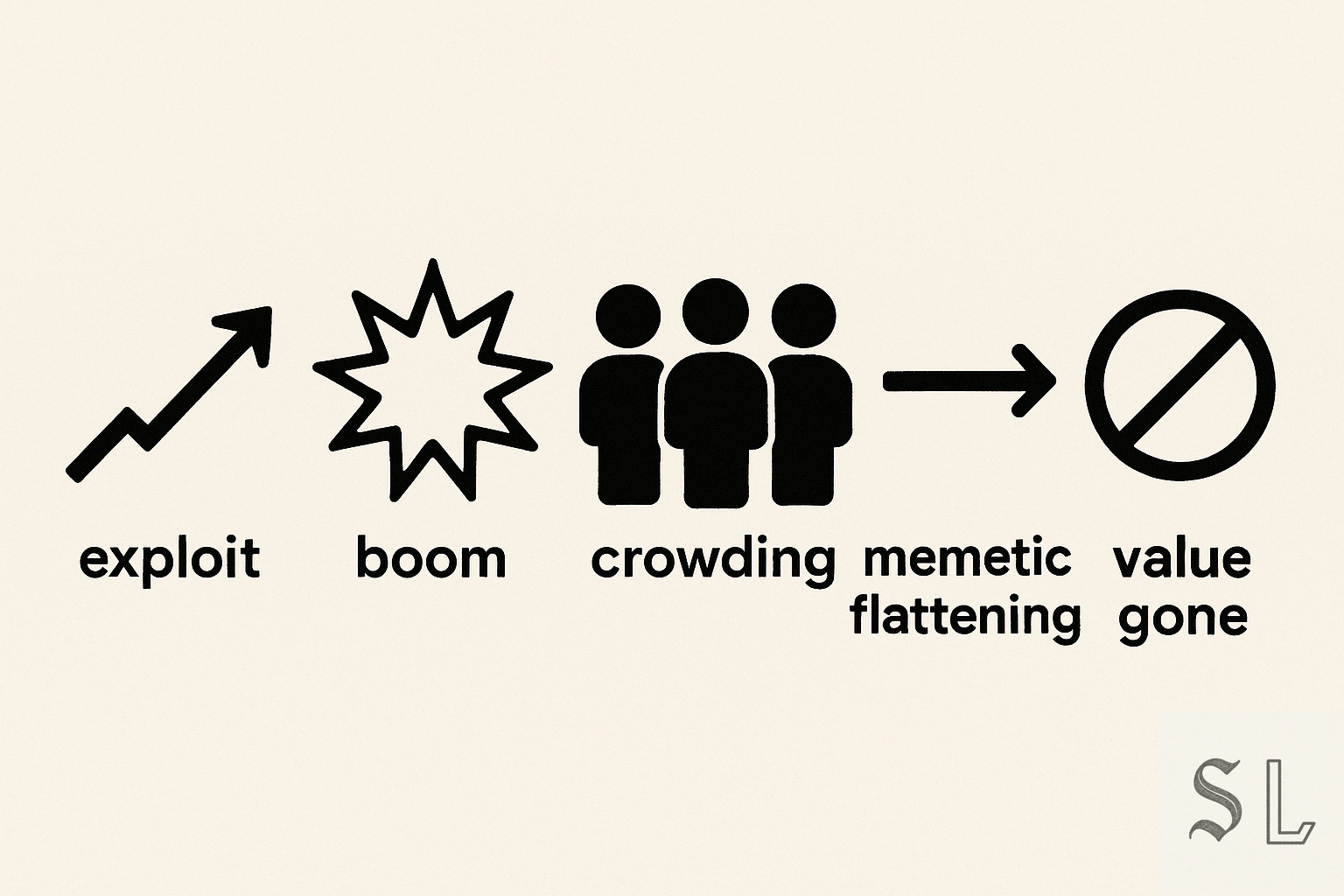 You post the 12-second hack. The machine loves how clean it is: one face, one emotion, one tidy payoff. It slings you onto escalators you didn’t know existed. Comments pile up, CPMs look gorgeous, three people ask for your “framework” and you suddenly believe in destiny. You didn’t outsmart the market but accidentally rented an arbitrage window on a signal the system finds delicious.