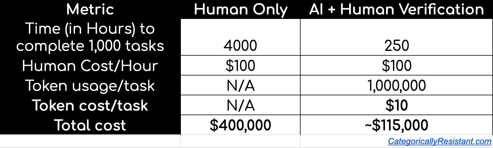 ✅ A step-by-step breakdown of how AI costs shift with accuracy, verification, and scale