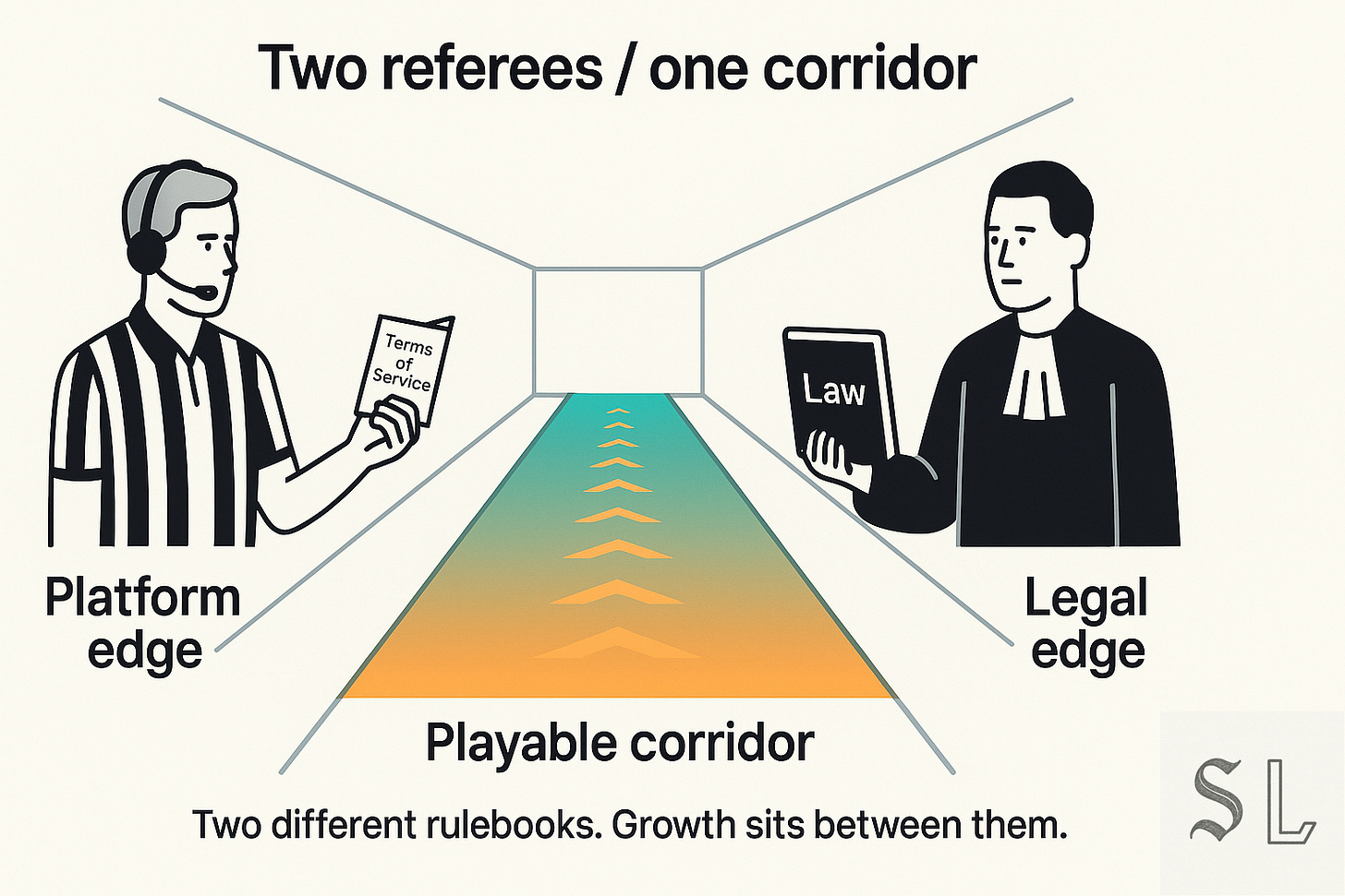 The feed isnât optimised for ideology, but for reaction within the rules. The winning post hits hard and stays technically compliant. Thatâs the edge corridor: the playable space between platform policy and the law where distribution is highest without handing moderators or prosecutors easy proof. Moralâemotional language travels and explicit violations get clipped. Peak reach sits just before the line, not beyond it.